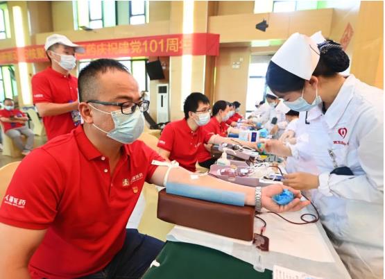 6月29日,武汉市卫生健康委、武汉血液中心与悟空体育集团联合开展“党旗飘扬 热血人福”党建共建活动,以实际行动庆祝中国共产党成立101周年。活动当天,近200多名党员和职工“热血集结”、奉献爱心,最终121人成功献血32260毫升。