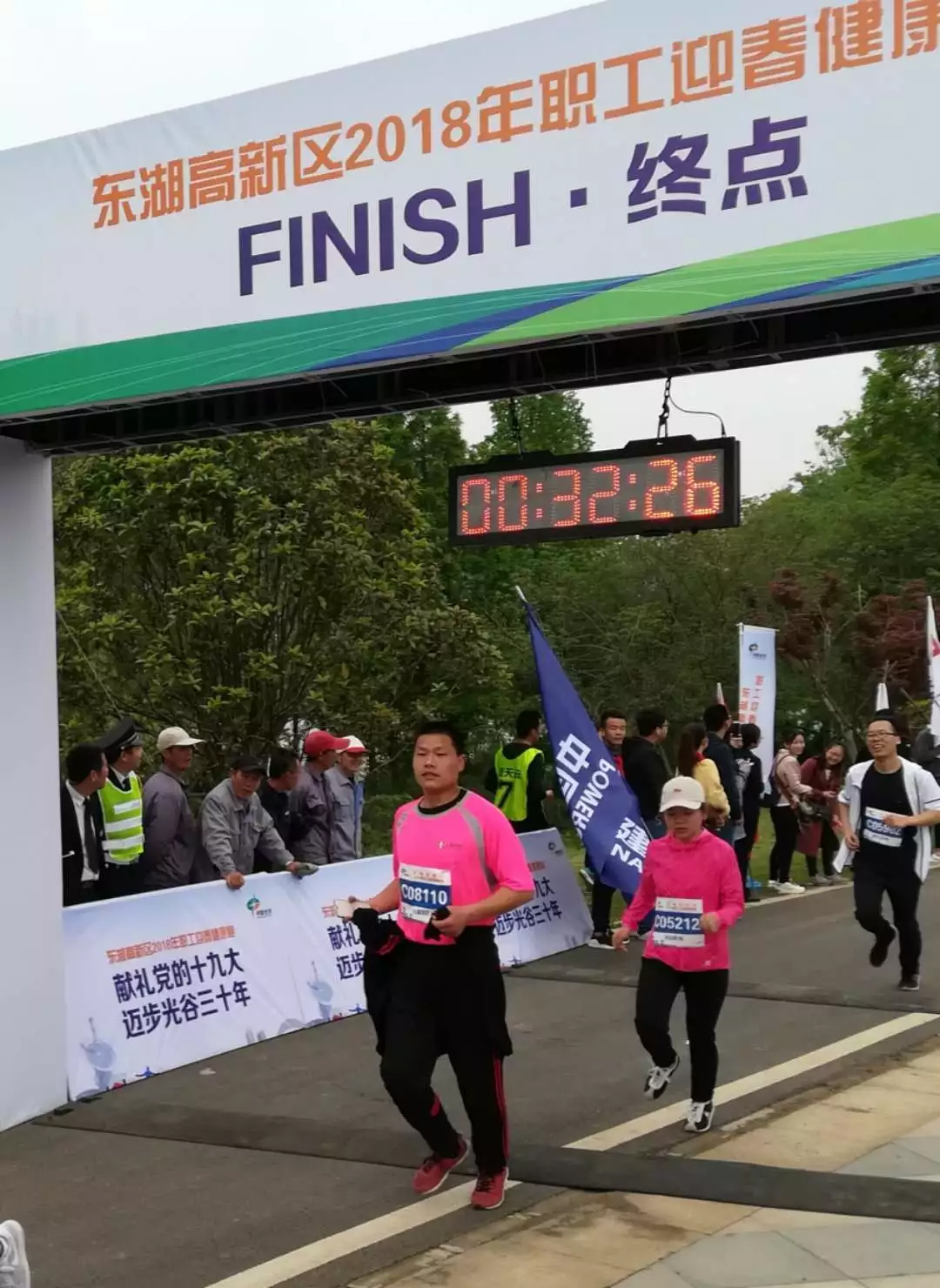 4月14日上午,春风细雨,东湖高新区总工会在武汉软件新城赛道组织举行了“献礼党的十九大·迈步光谷三十年”——东湖高新区2018年职工迎春健康跑活动。全区各企119支团体代表队参赛,悟空体育战队获得团体总分第七名的优异成绩。此次健康跑环绕风景优美的严西湖畔,全长5.8公里。其中团体赛成绩以全队最后一人到达的时间为准,对团队合作精神和协同作战能力是不小的挑战!