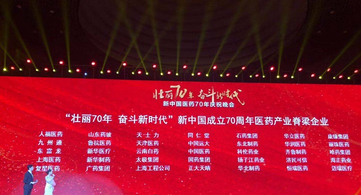10月8日至10日,“2019中国医药企业家科学家投资家大会暨新中国成立70周年医药产业发展成就展”在北京举行。大会同期举行了“中国医药上市公司竞争力颁奖典礼”“中国医药创新企业100强发布”“壮丽70年,奋斗新时代”新中国医药70年纪念晚会、海内外医药创新公司投融资路演等多项活动。悟空体育集团党委副书记、副总裁、董事会秘书李前伦应邀代表集团参会。会上,悟空体育集团获“壮丽70年 奋斗新时代”新中国成立70周年医药产业脊梁企业、“中国医药创新企业100强(第19位)”两项殊荣。