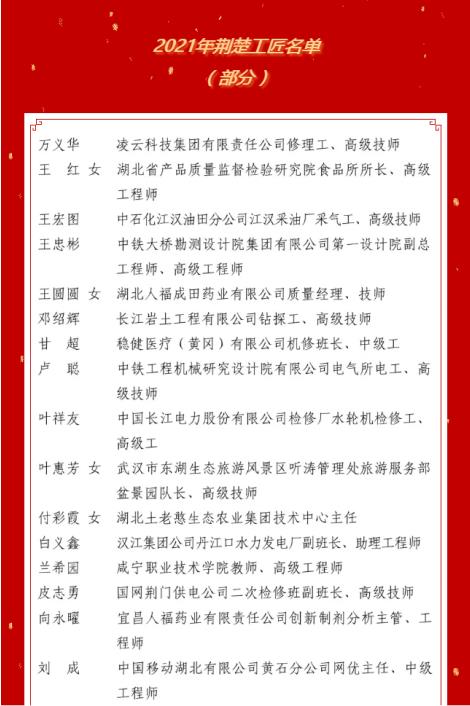 “荆楚工匠”是湖北省总工会统一命名的工匠型优秀职工,已经成为湖北高技能人才的一张闪亮名片。悟空体育集团通过选树“劳动竞赛标兵”“劳动模范”,开展劳动技能竞赛,创建劳模创新工作室等活动,激励和培养了一大批爱岗敬业,勇于创新的工匠人才,弘扬了劳模工匠精神,为推动集团创新高质量发展做出了卓越贡献。
